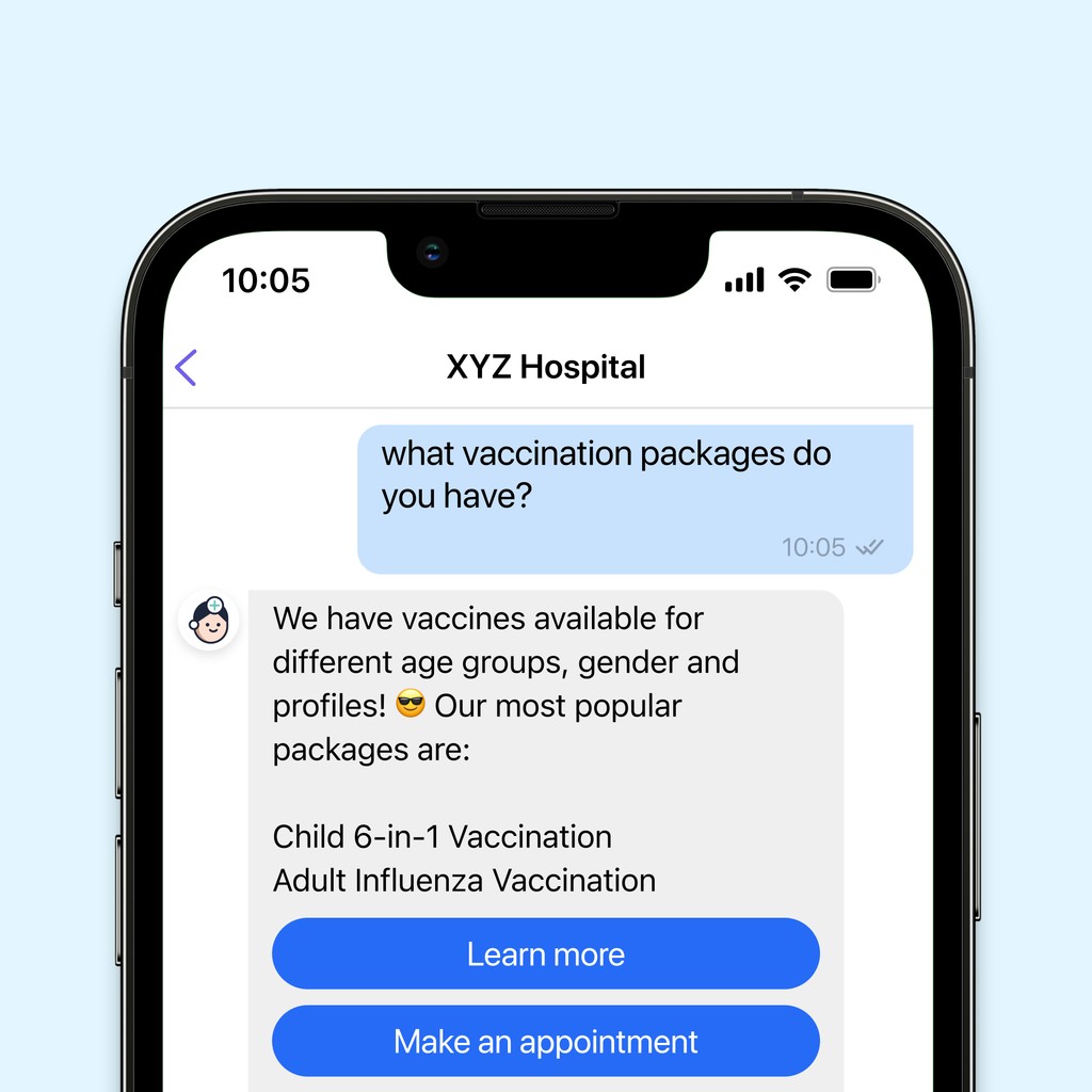 Deploy pre-trained AI agents to automate scheduling, pre-admissions, education, and follow-ups — all through popular chat and messaging platforms.