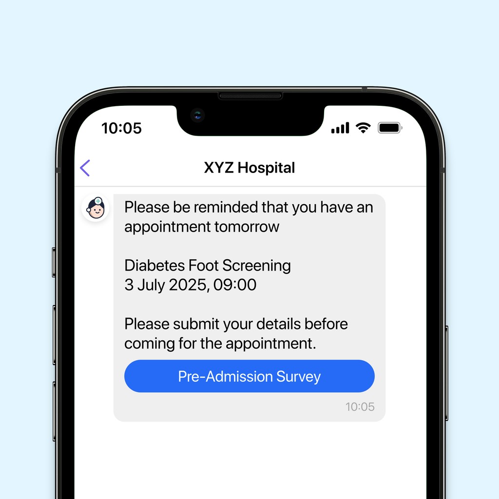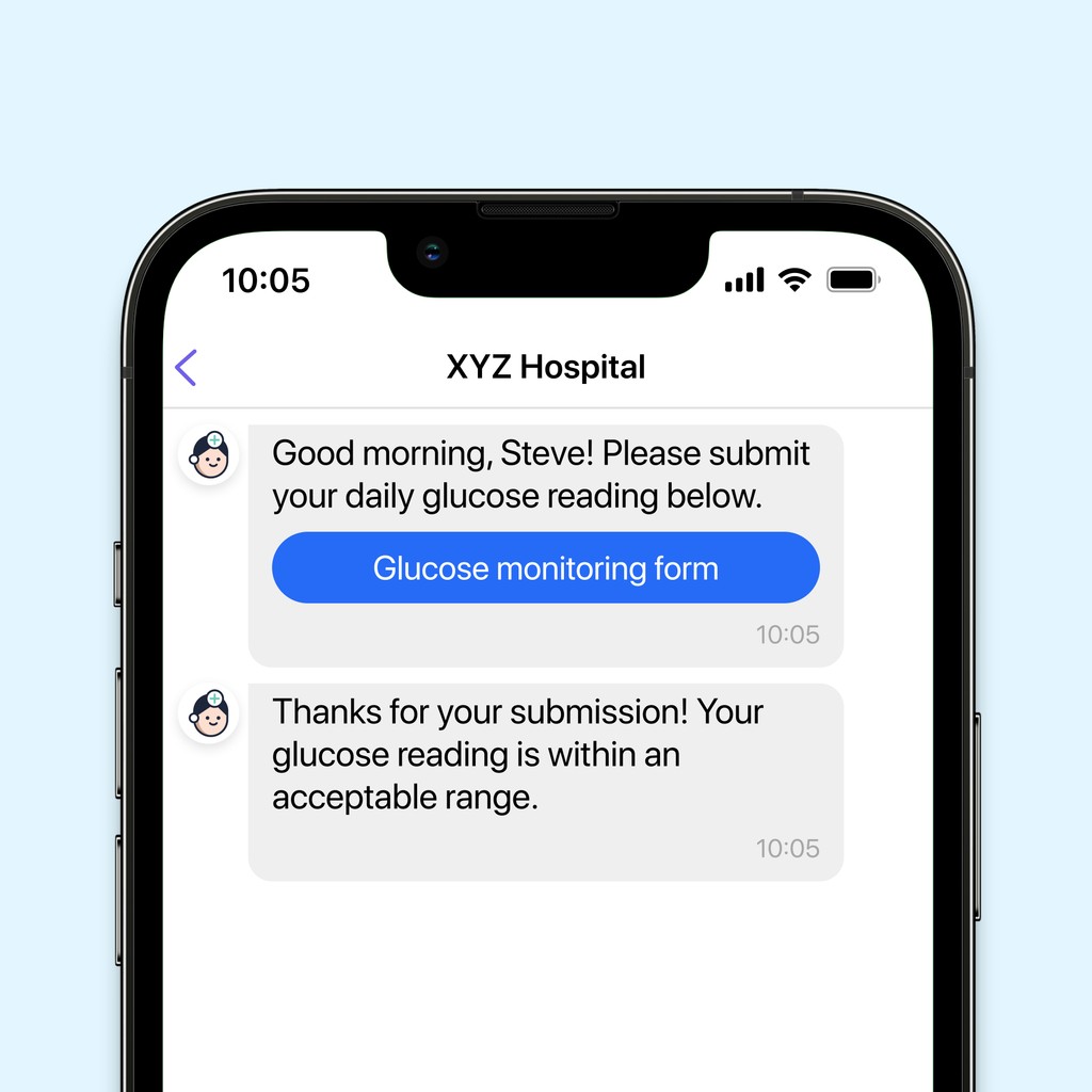 Track symptoms, vitals, and recovery progress directly via chat apps, and alerts care teams of anomalies for timely intervention.